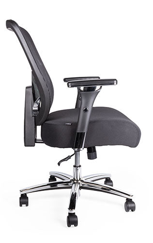 tapiz: respaldo en malla color negro y asiento en tela 100% poliéster, funda tapizada y pespuntada.
