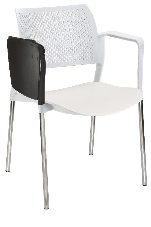 - Estructura: de acero tubular de 7/8" de diámetro, calibre 14; terminado en cromo, con descansabrazos de polipropileno en color negro y con paleta lateral abatible color negro fijada al brazo mediante un dispositivo.