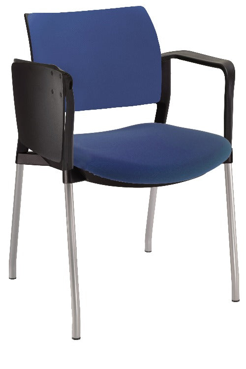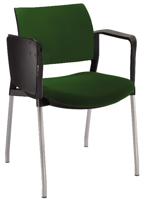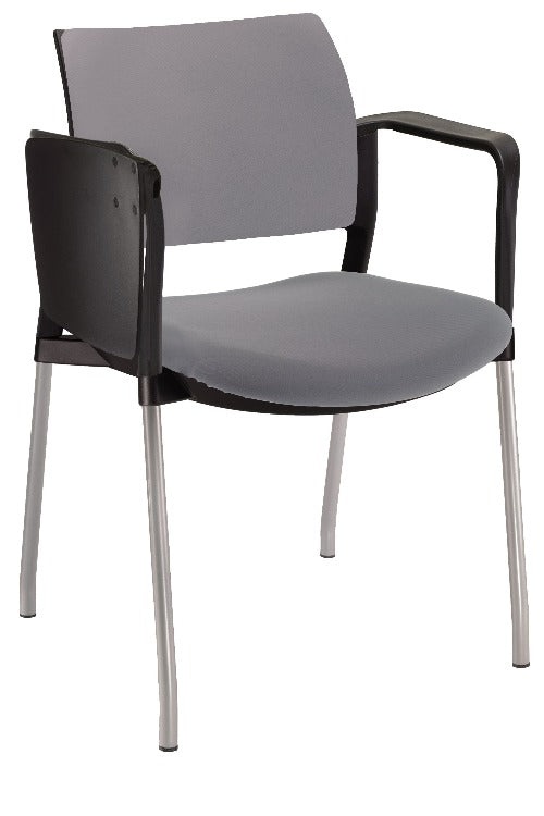 - Estructura: de acero tubular de 7/8" de diámetro, calibre 14; con acabado en pintura epóxica (electrostática) color negro mate o gris, con descansabrazos de polipropileno en color negro y con paleta lateral abatible en color negro fijada al brazo mediante un dispositivo.