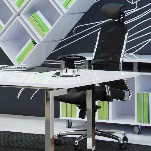 - Respaldo: En malla de diseño ergonómico de color negro.