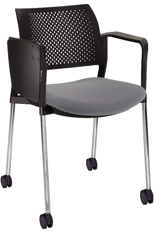 Silla KYOS con paleta asiento tapizado y respaldo en polipropileno base cromada y ruedas