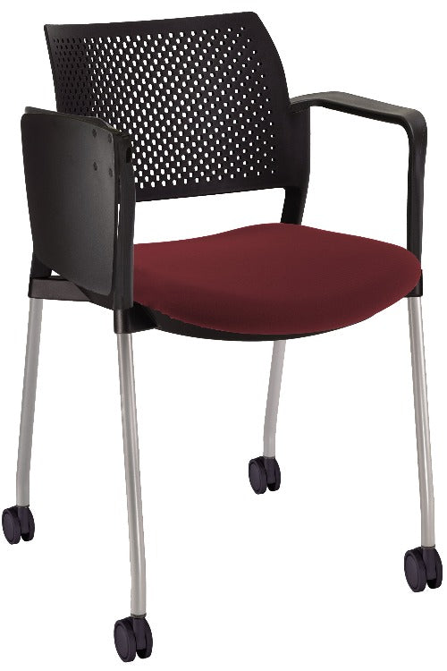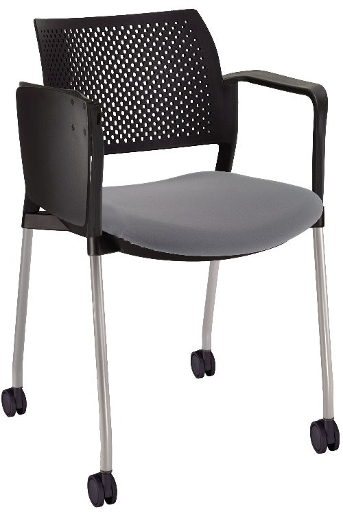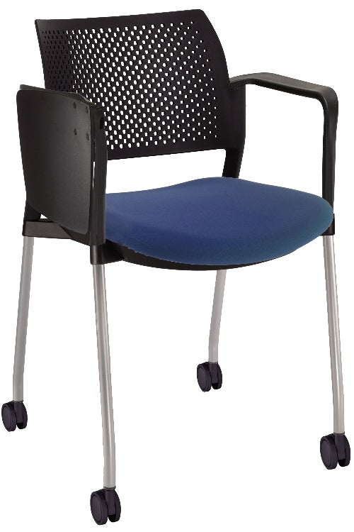 Silla Kyos con paleta asiento tapizado y respaldo en polipropileno base pintada y ruedas