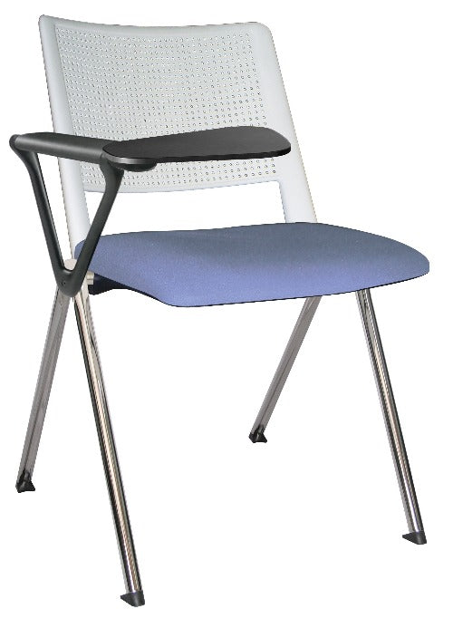 Silla REVOLUTION con paleta, asiento tapizado y respaldo en polipropileno base cromada