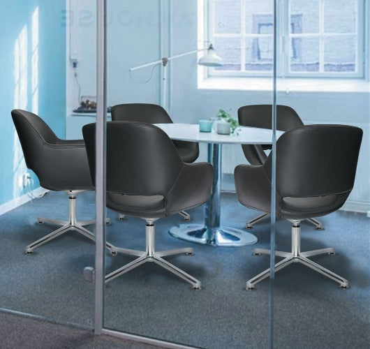 - Base: estrella de 4 puntas en aluminio fundido y pulido con terminado en cromo, con regatones.