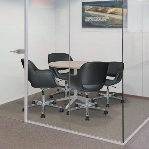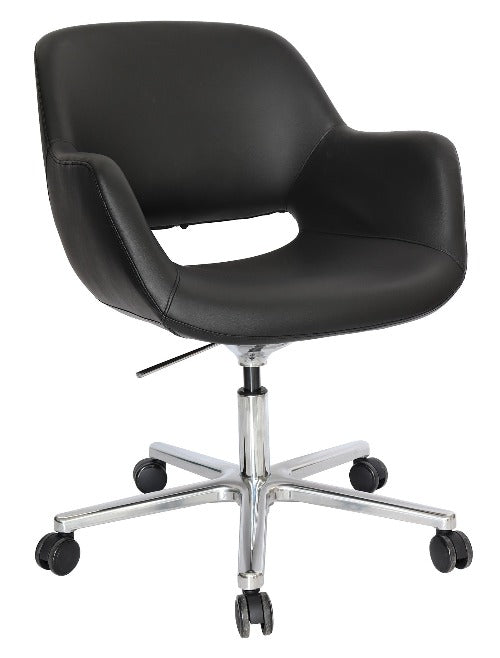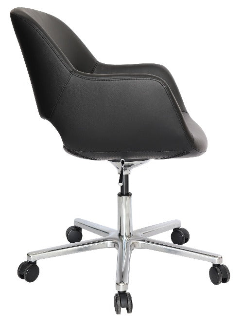 Base: estrella de 5 puntas en aluminio fundido y pulido con terminado en cromo, rodajas tipo dual y/o regatones.