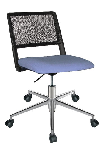 Silla REVOLUTION, Base en aluminio, Respaldo en polipropileno negro y malla color negro, Asiento en tela o viníl